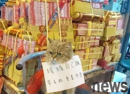 The netizen’s store was not doing well, and he could hardly afford canned cats, so he asked his cat to put up a sign in the store to earn money from the canned goods. Meow: I’m really tired. It’s not easy for this family.